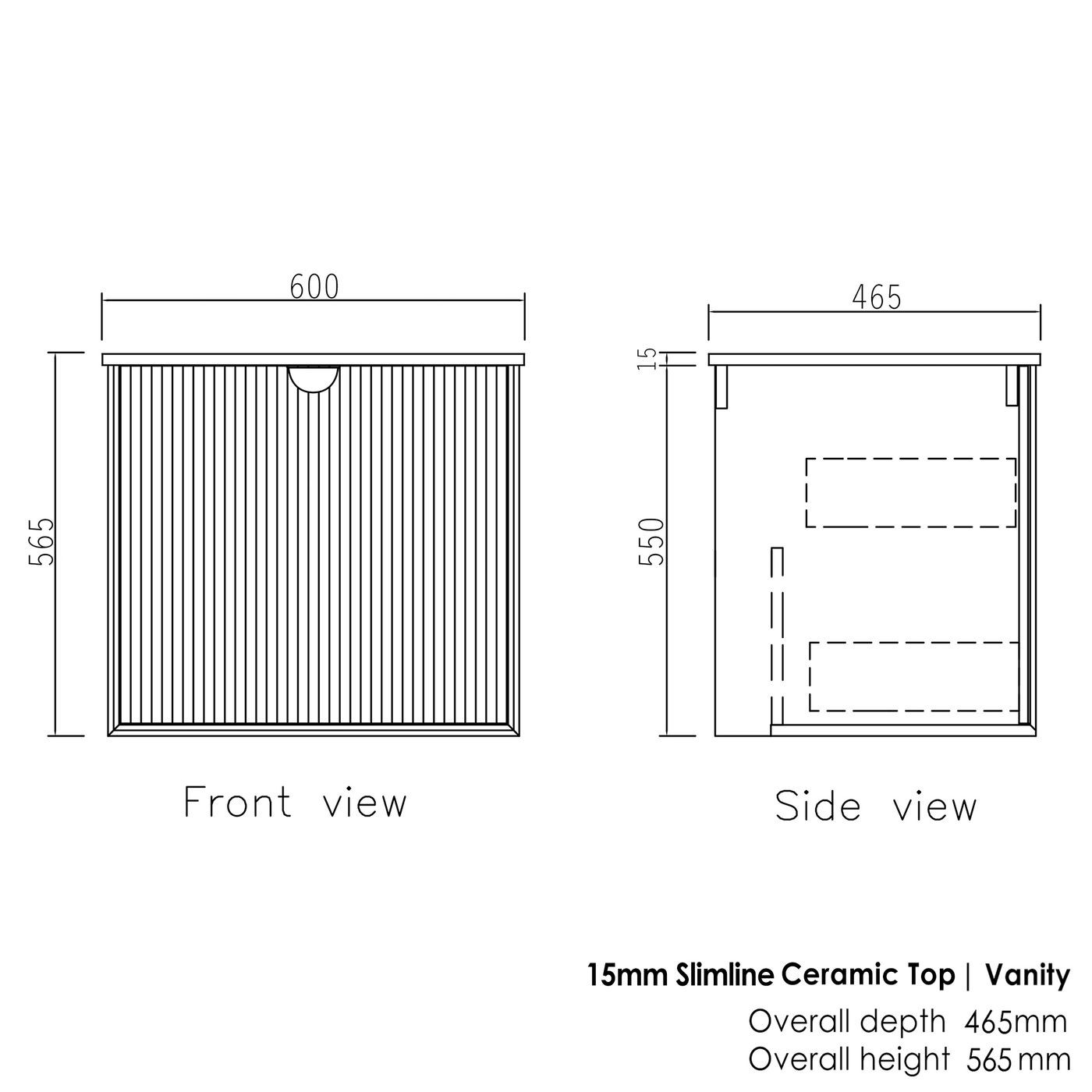 Marlo 600mm Matte Black Wall Hung Vanity with Ceramic Top