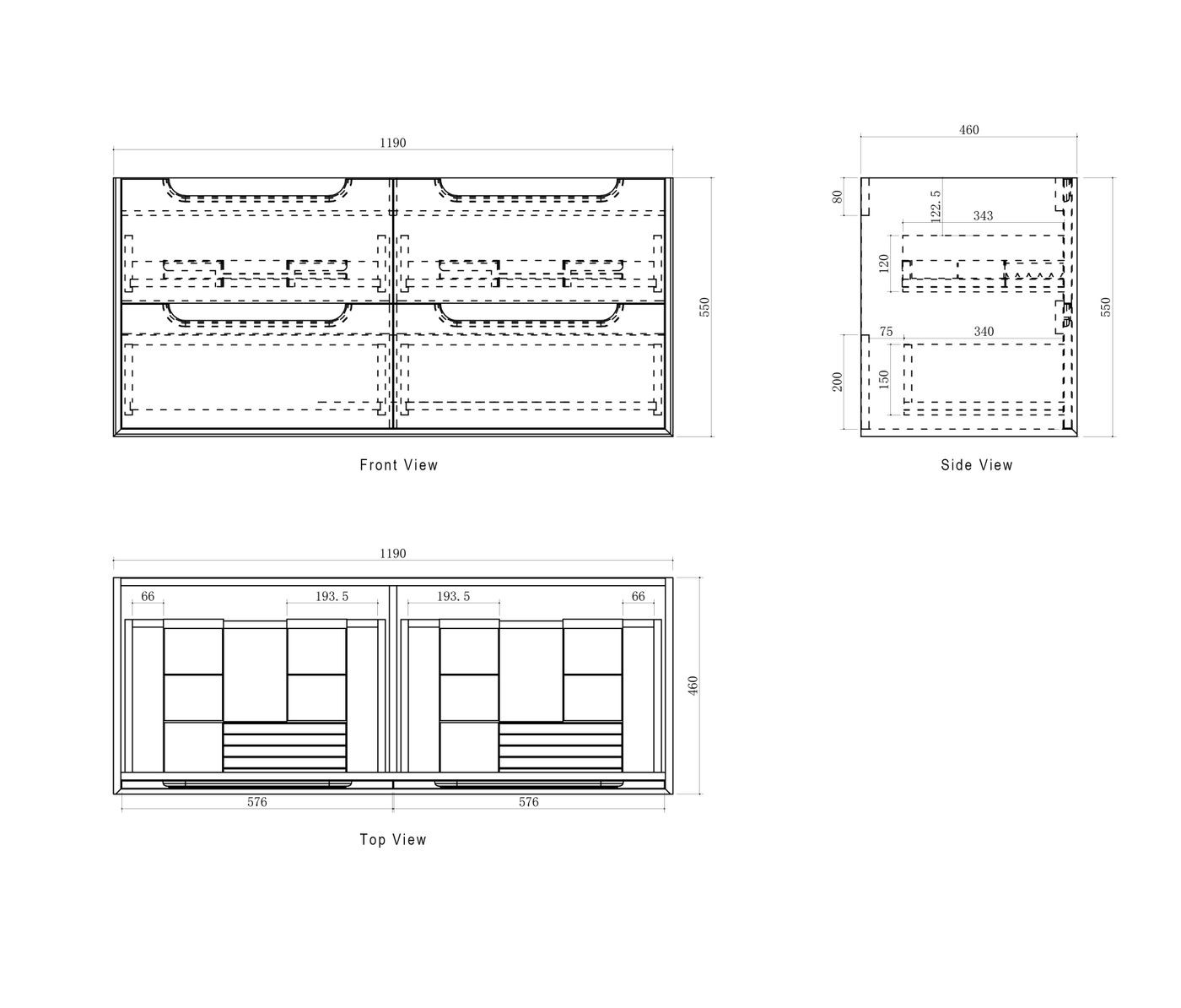Dimensions 1190x460x550mm