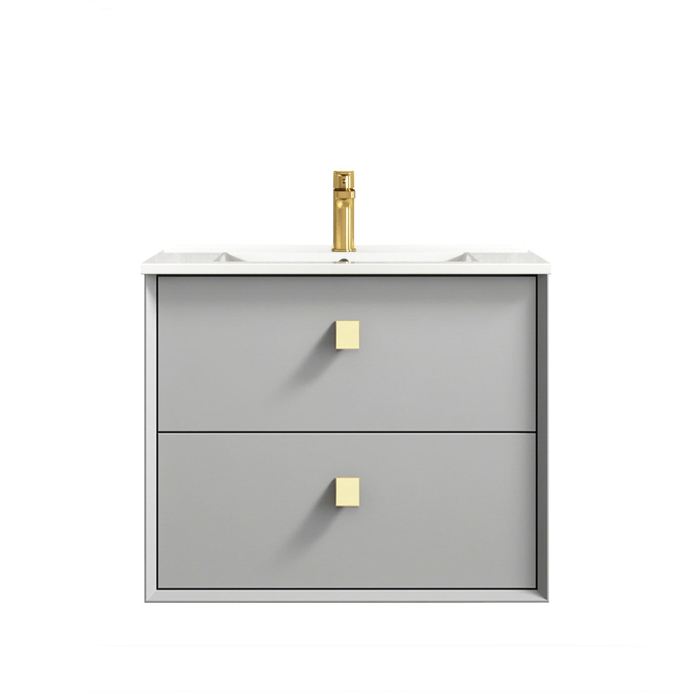 Boston 600mm Light Grey Wall Hung Vanity with Ceramic Top