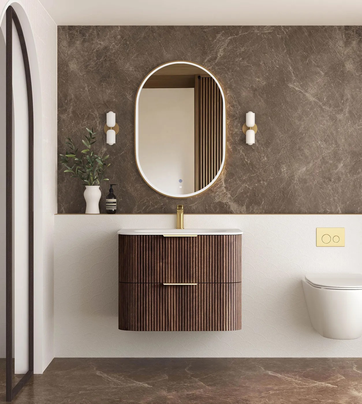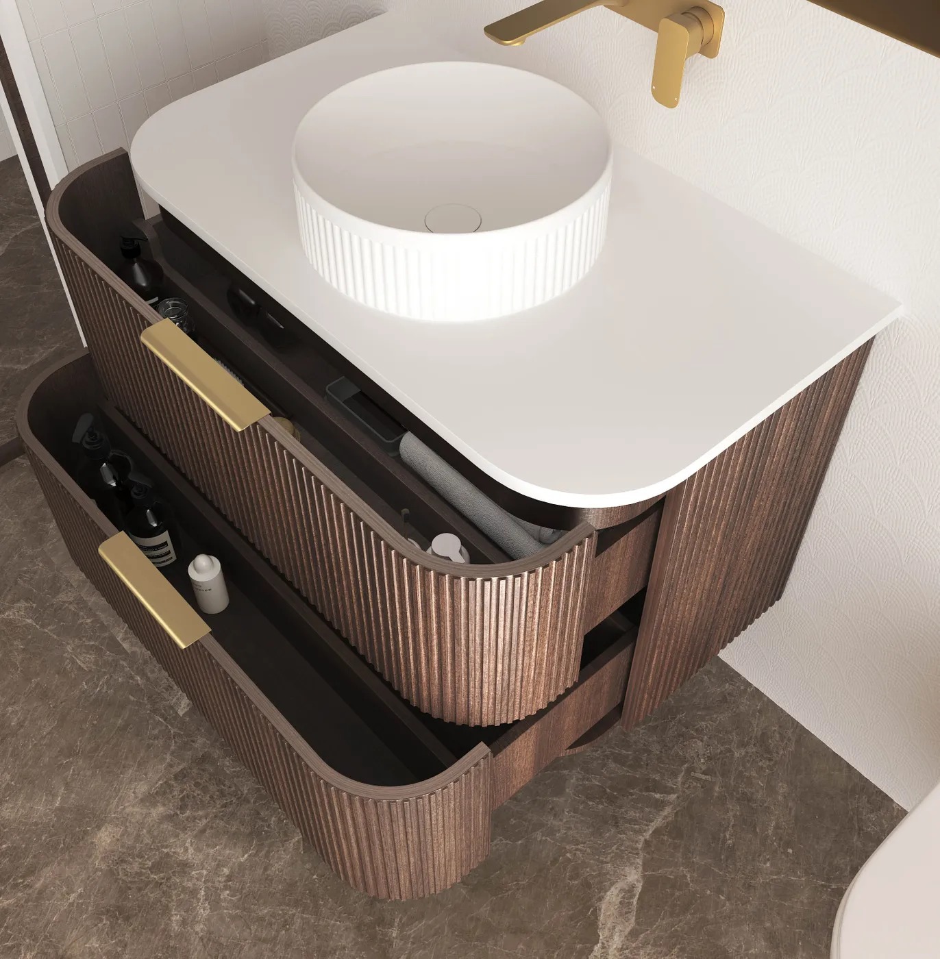Havana 750mm Sable Walnut Fluted Wall Hung Fluted Curve Vanity Cabinet