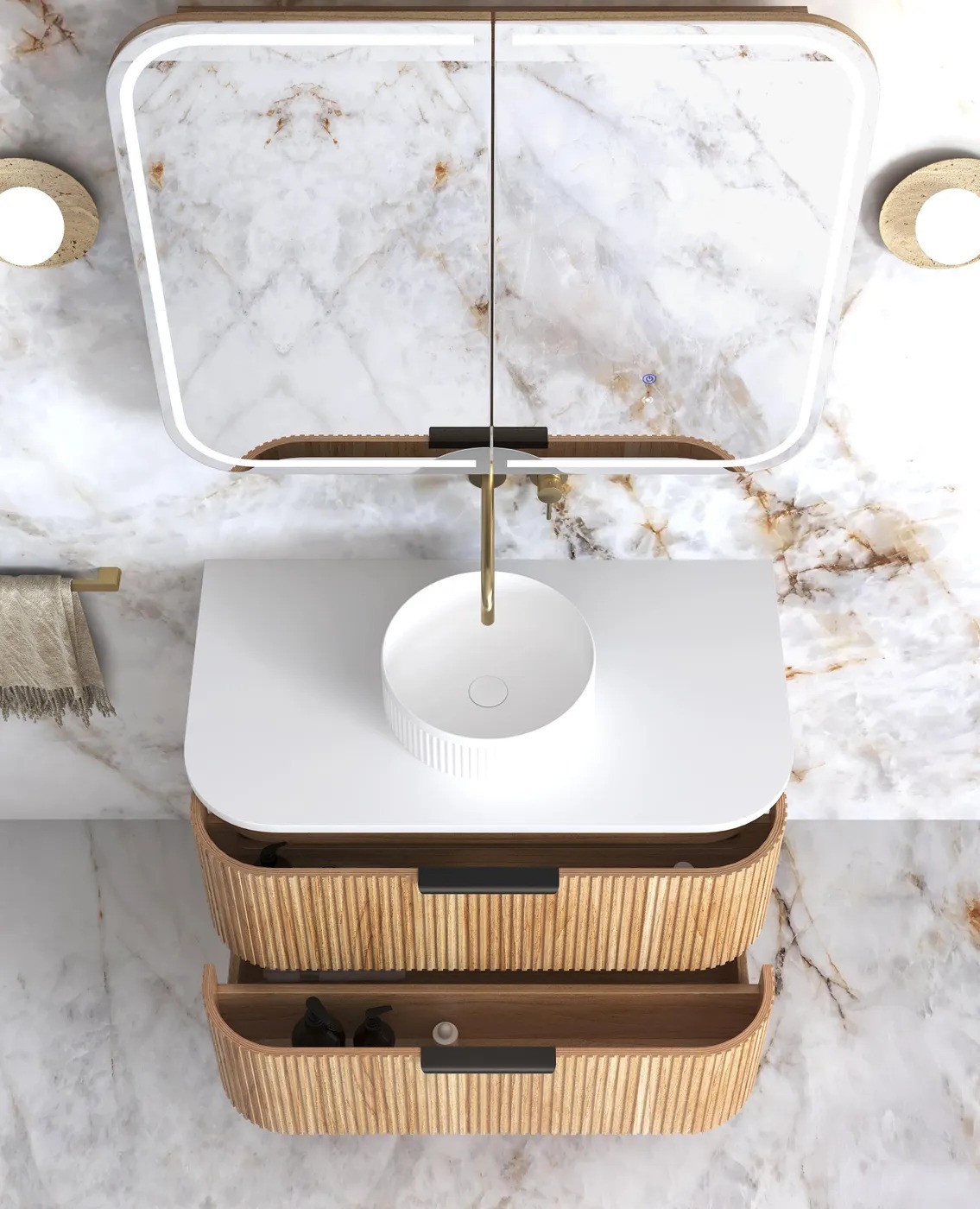 Havana 900mm Woodland Oak Fluted Wall Hung Fluted Curve Vanity Cabinet
