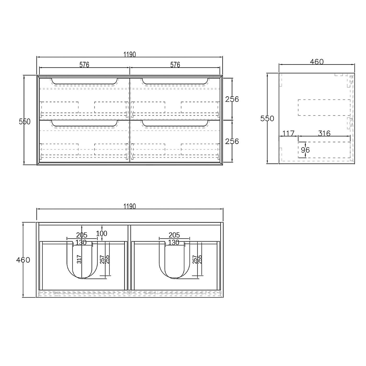 Byron 1200mm Black Oak Wall Hung Cabinet Only Double Bowl