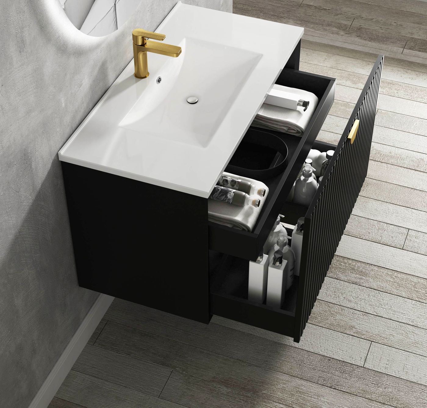Marlo 900mm Matte Black Wall Hung Cabinet Only