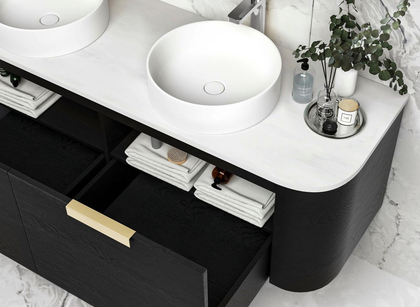 Bondi 1500mm Black Oak Wall Hung Curve Cabinet