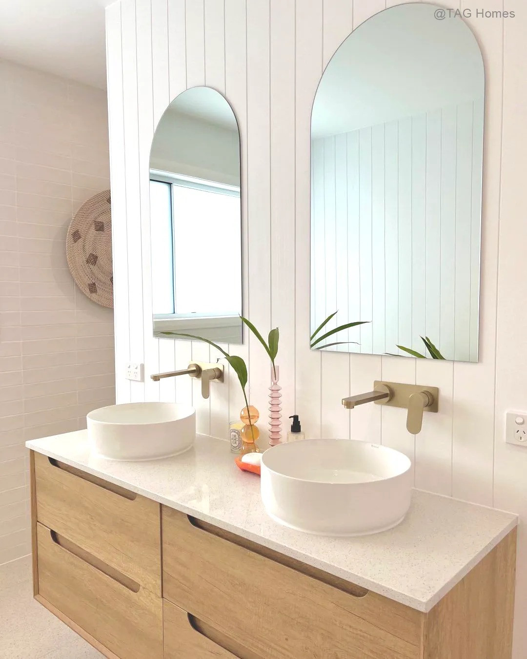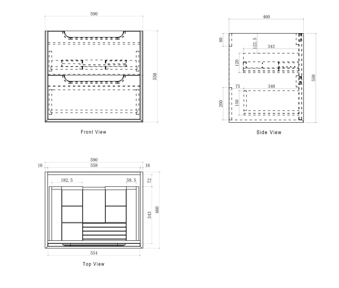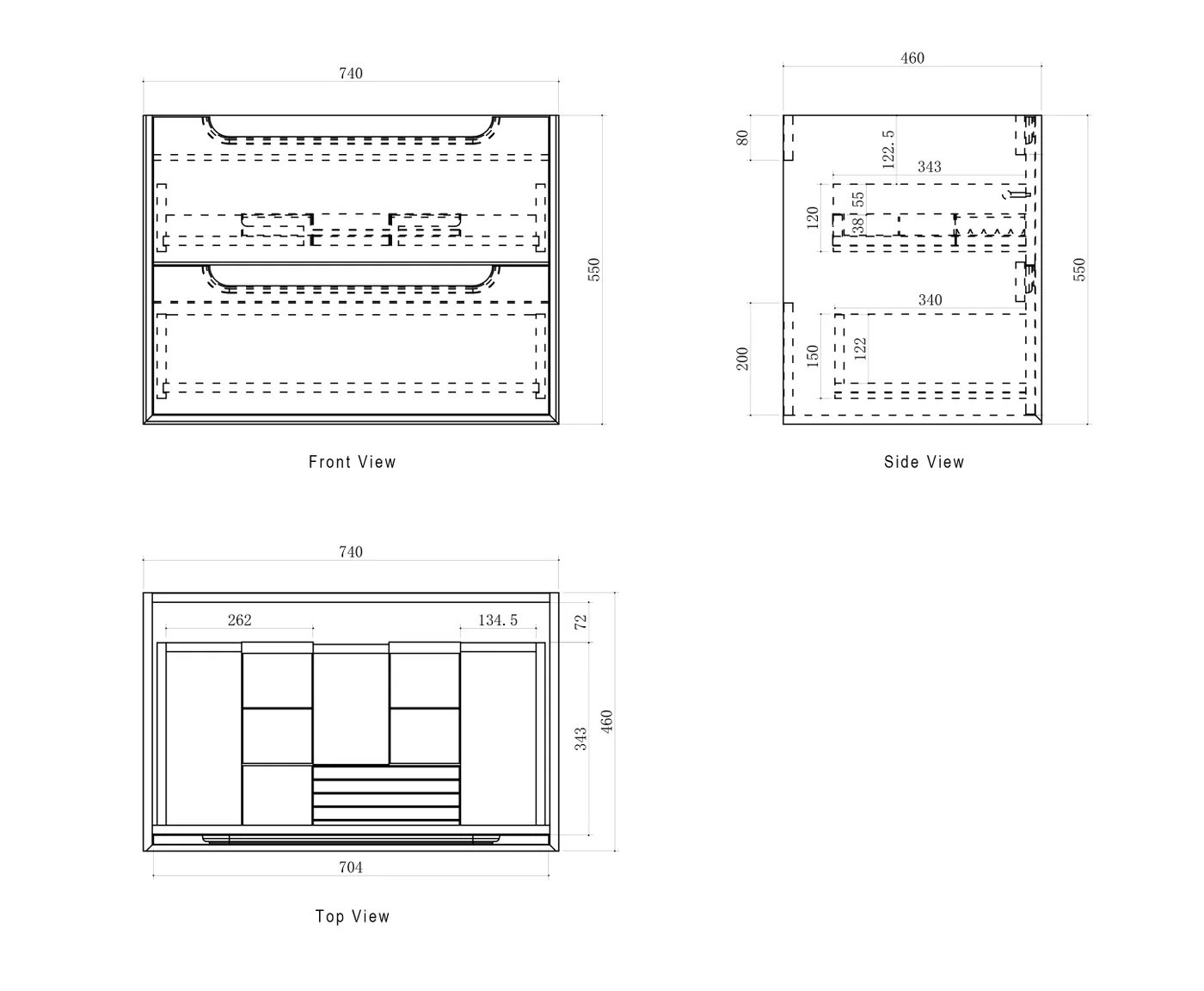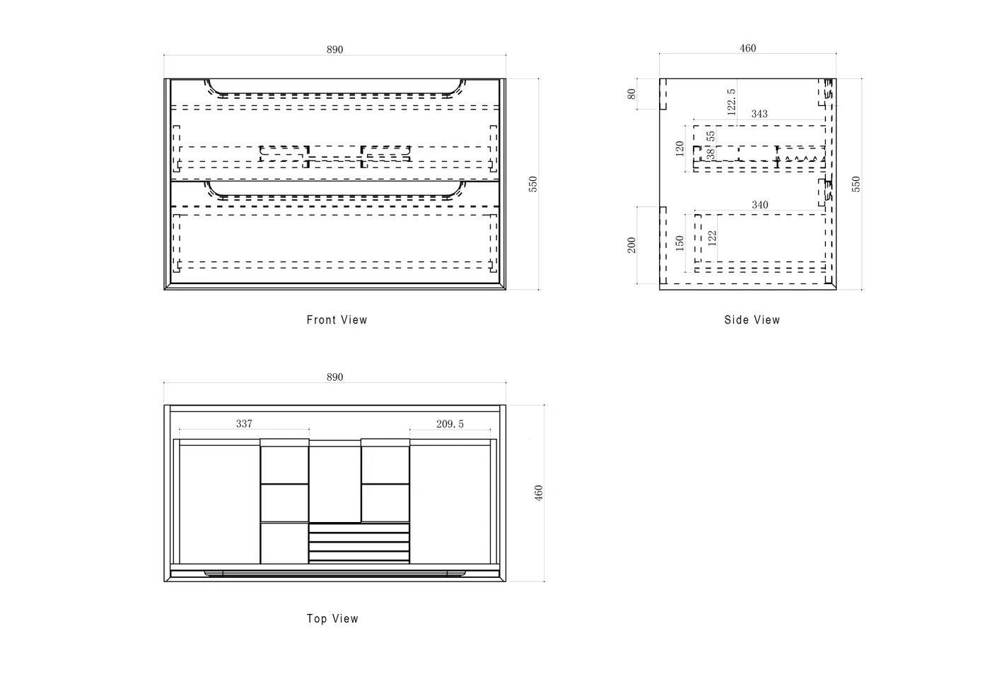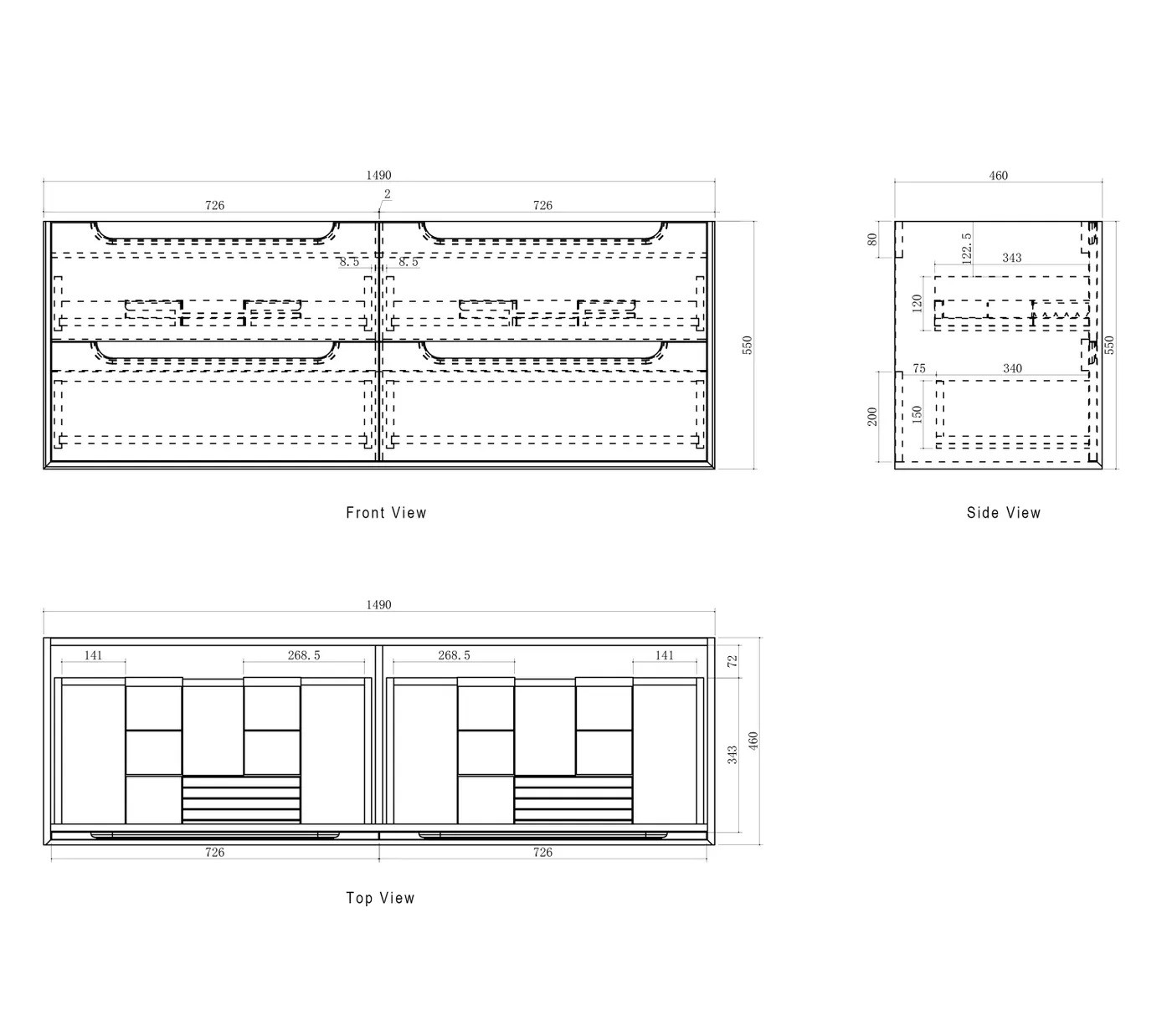 Wall-hung vanity with soft-close drawers, high moisture–resistant plywood construction, oak interior finish, and soft-edge finger pull handles. Fitted with DTC soft-close runners and hinges.
