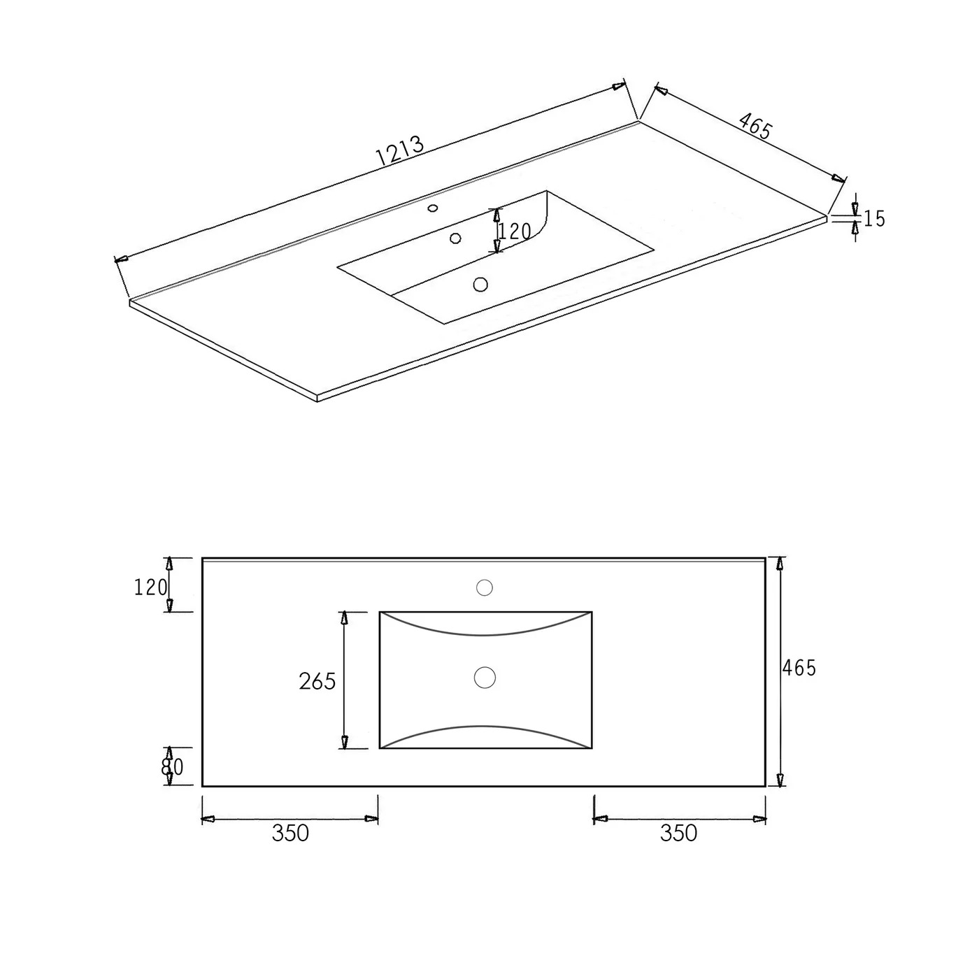 Slim Line Ceramic Top 1200x460x170 with Taphole & Overflow