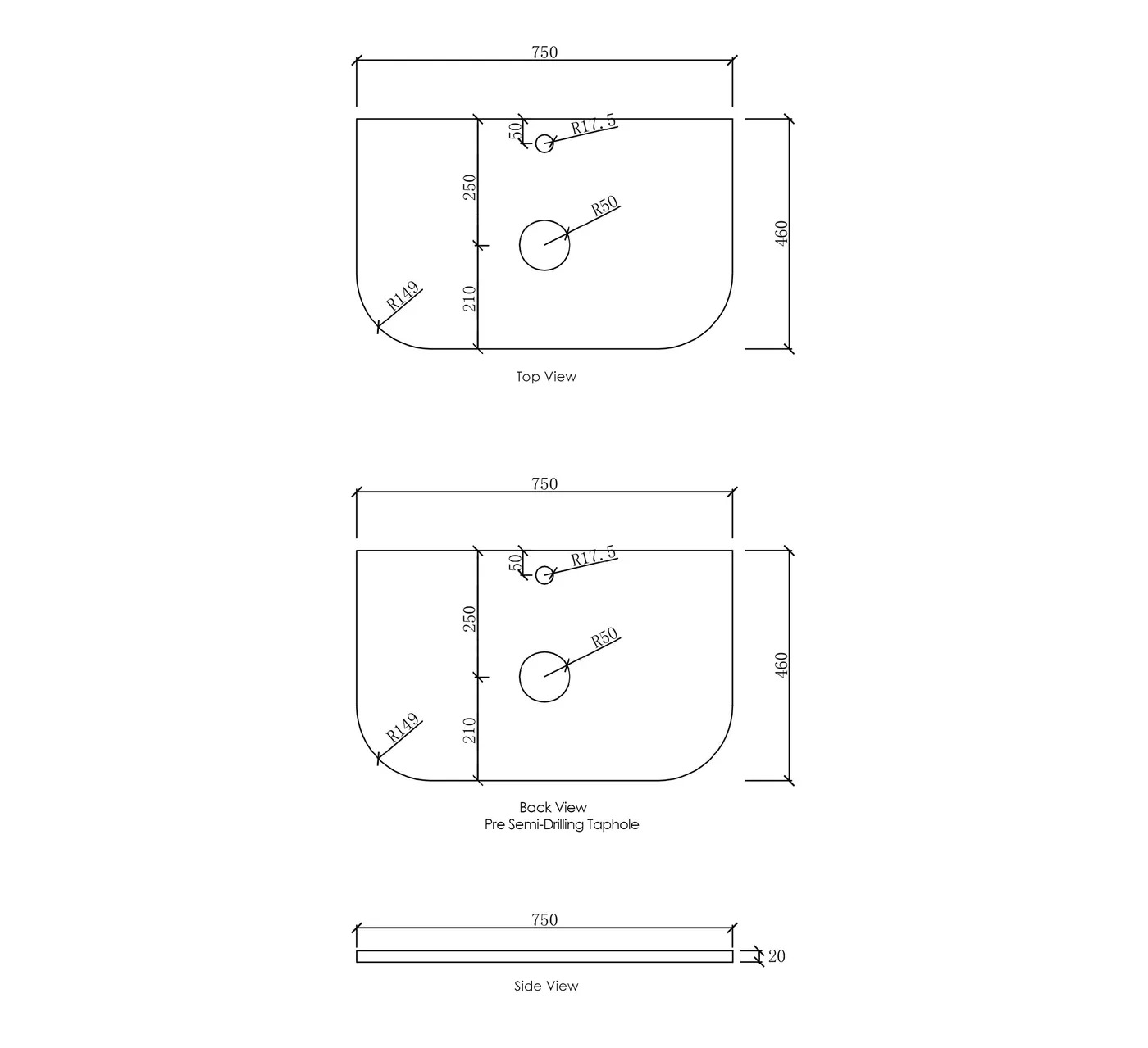 Bondi 750x460x20 Matte White Top - NTH or 12TH Only