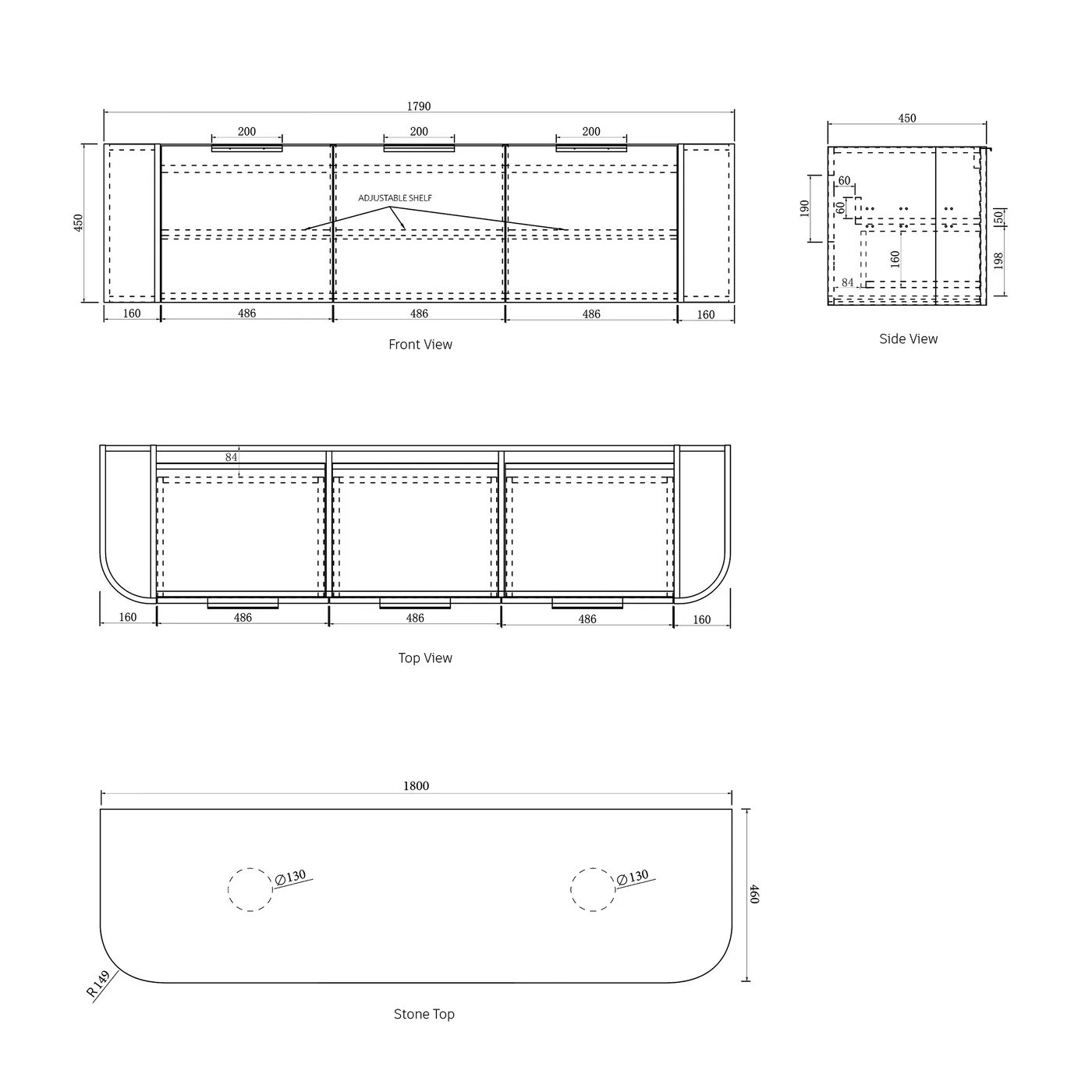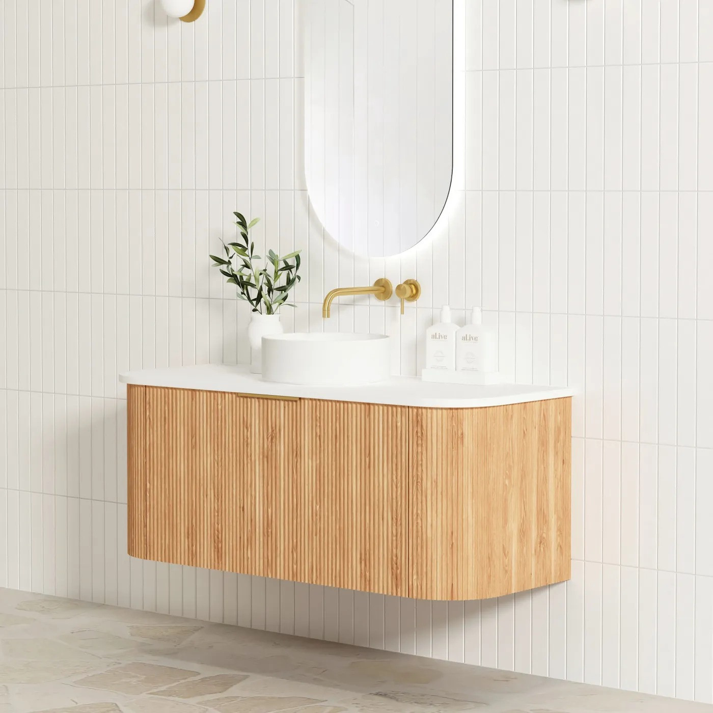 Bondi Fluted Wall Hung Curve Vanity