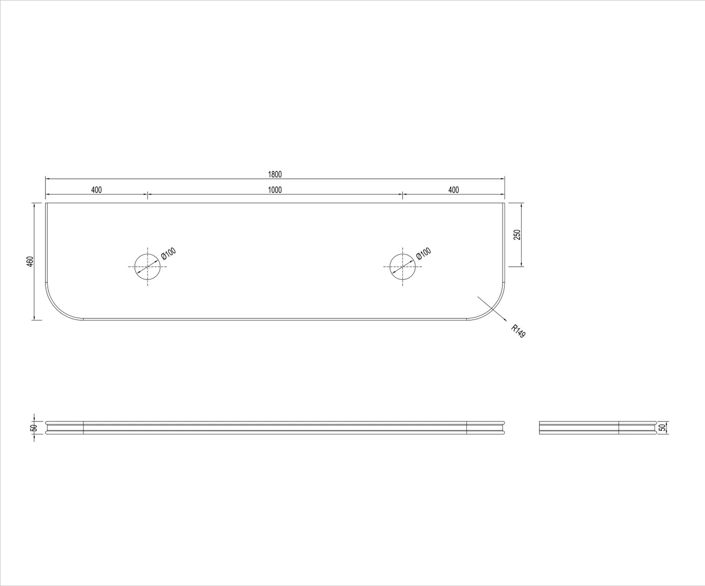 Bondi English Edge 1800x460x50 Sand Dune Top