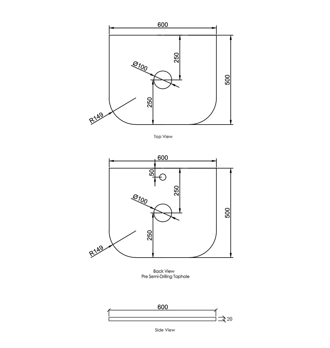 Havana 600x500x20 Solid Surface Cloudy Carrara Top