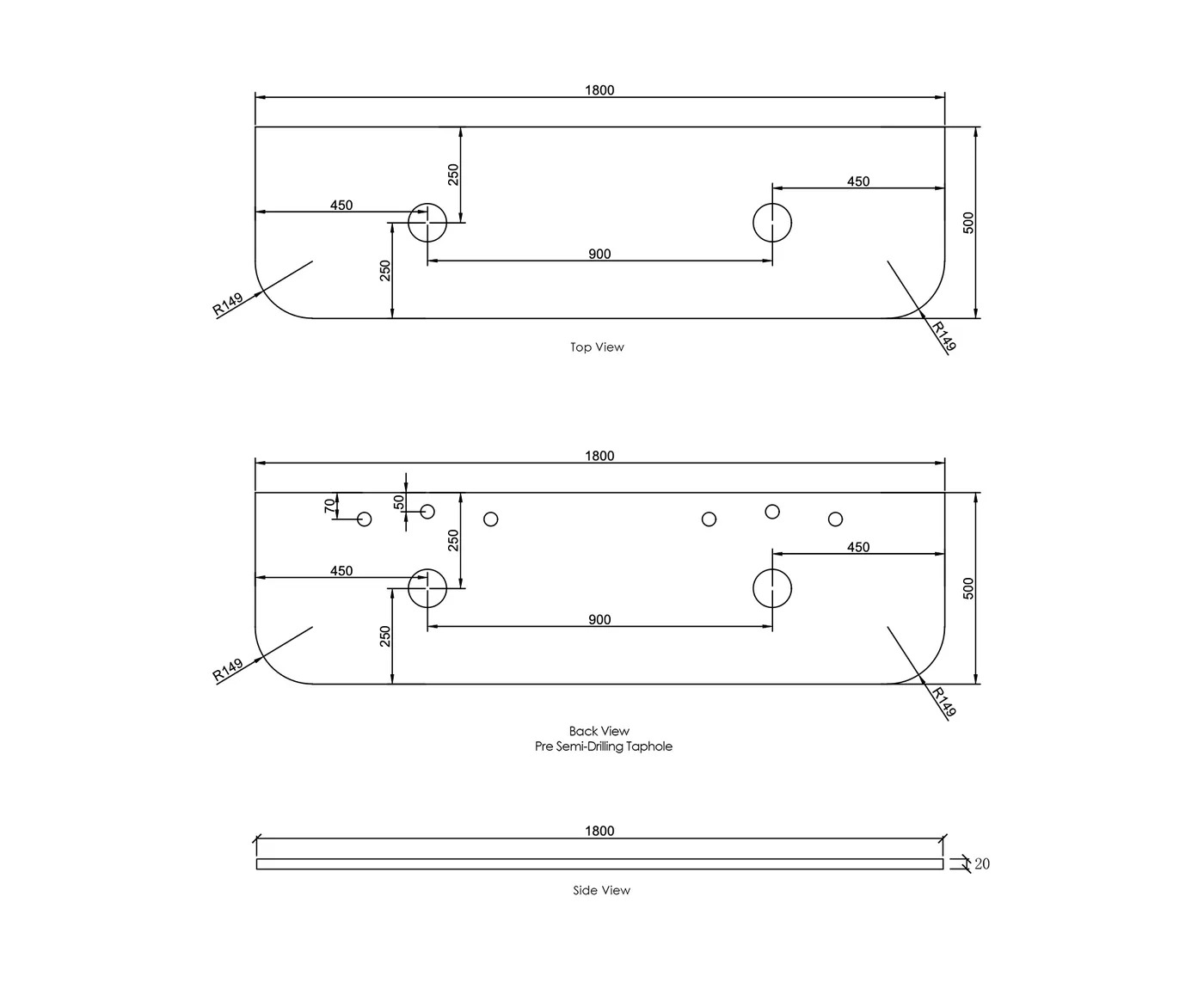 Havana 1800x500x20 Pure White Top