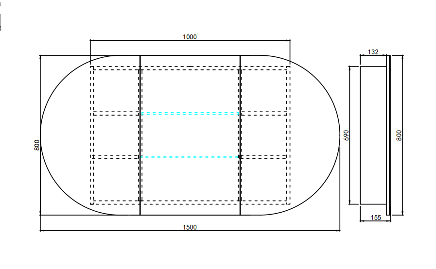 1500 x 155 x 800mm
