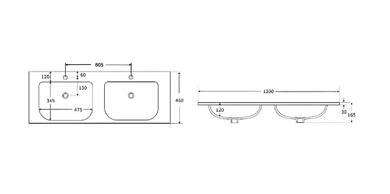 NAGA Ceramic Vanity Top Soft Square Bowl Double 1200