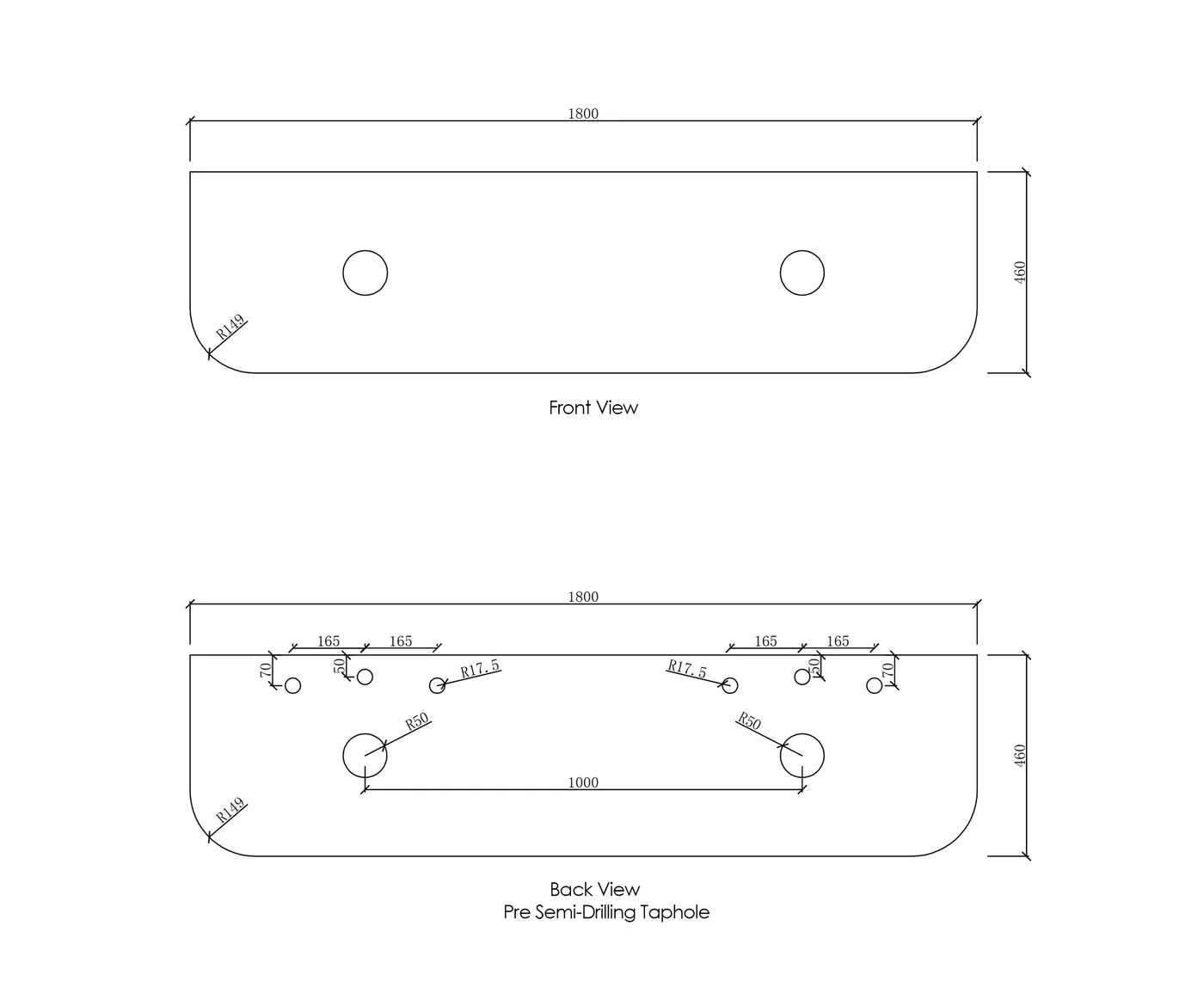 Bondi 1800x460x20 Pure White Top