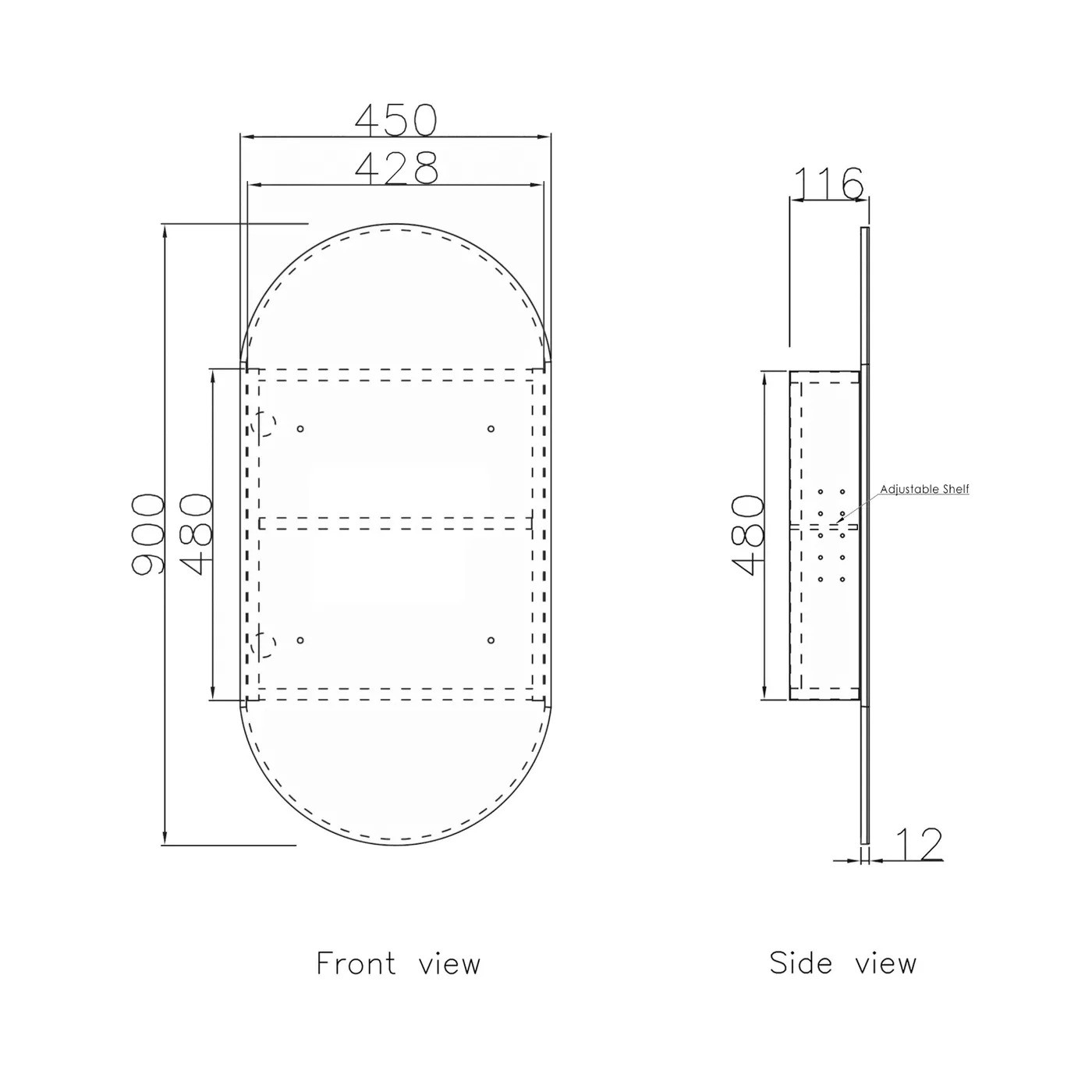 Door 900x450mm Pill Shape Mirror