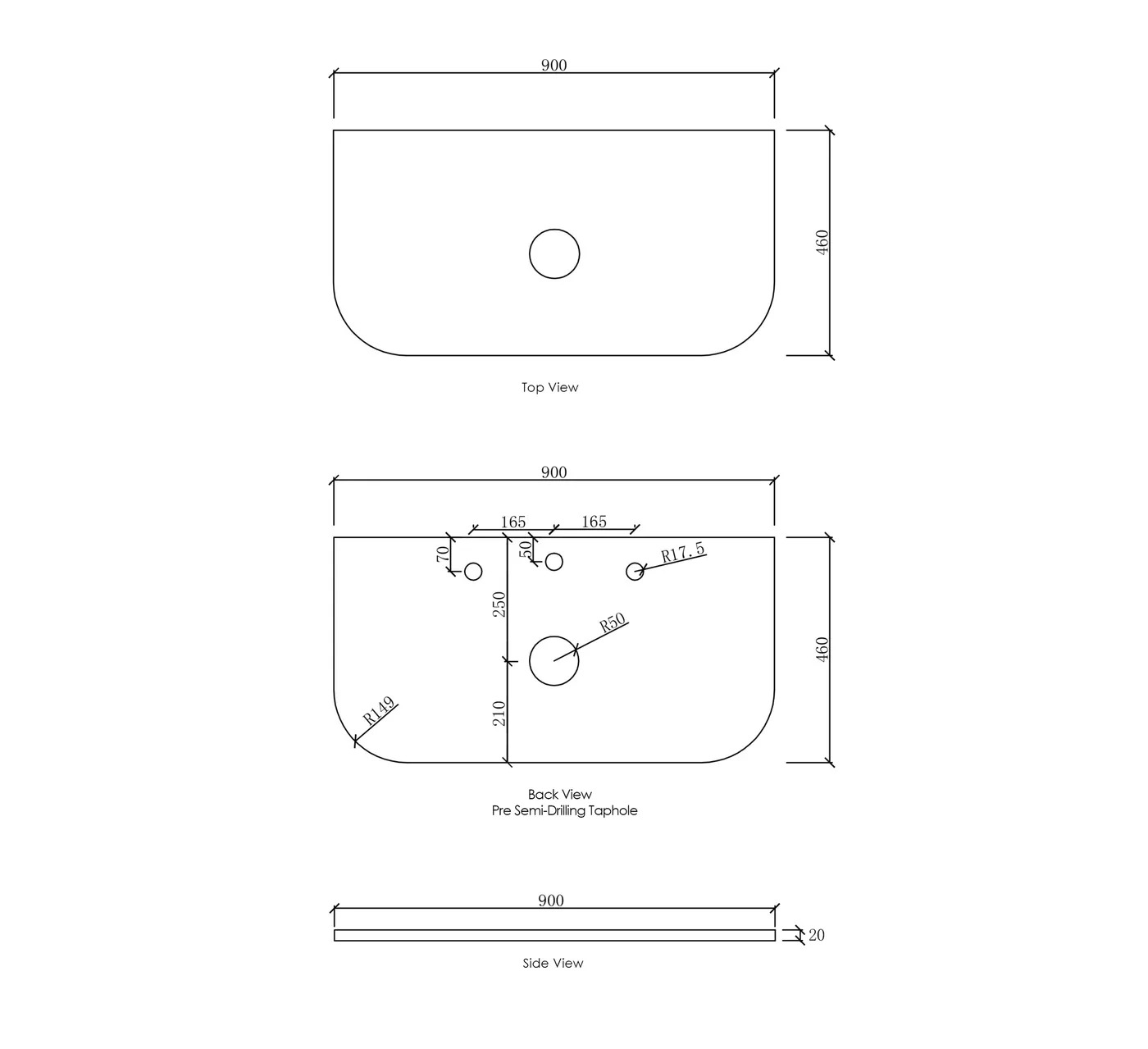 Bondi 900x460x20 Solid Surface Matte White Top
