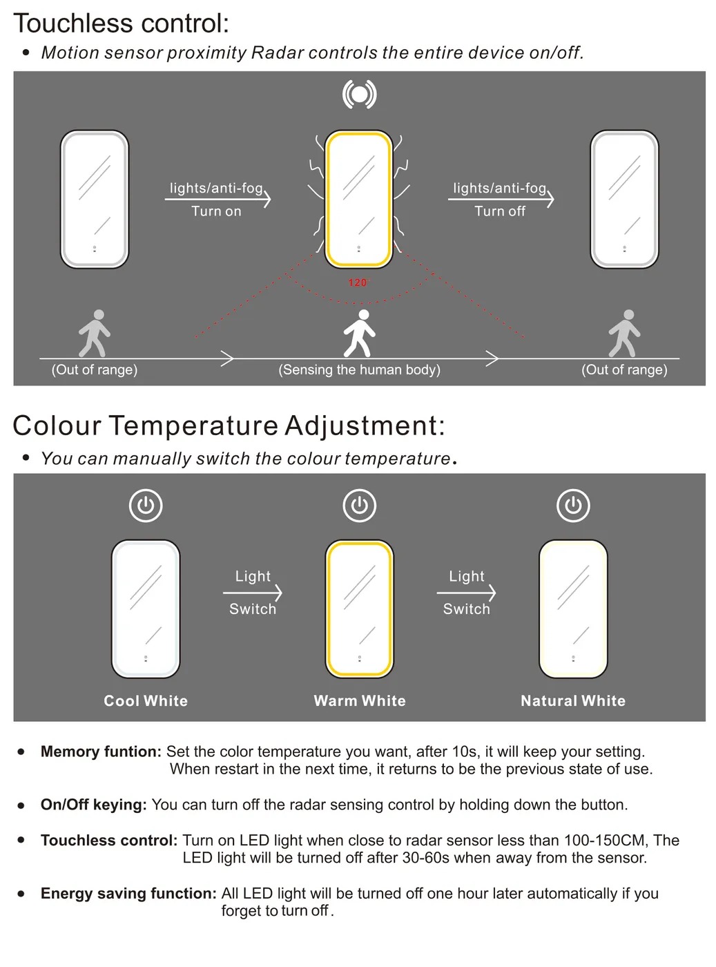 • Motion Sensor & on/off Press Button