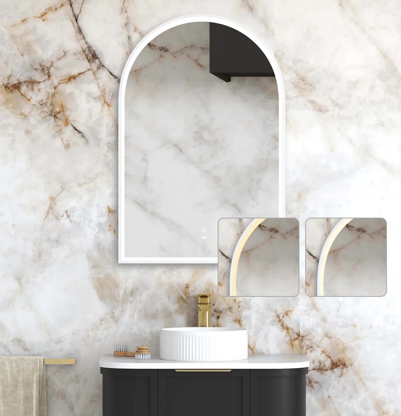 LED Archie 900(H)x600(W) White Metal Frame Tuffi Mirror